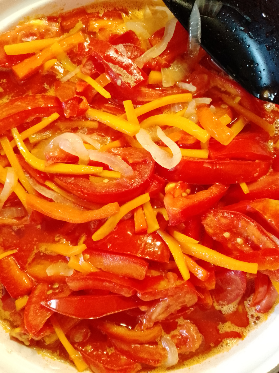 1 кг. Моркови 1 кг. Репчатого лука 1,5 кг. Сладкого перца 2 кг. Помидор 400 гр. Подсолнечного масла 4/5 стакана уксуса 9% 1 стакан сахара 2 ст.л. с горкой соли. Овощи нарезать соломой.. Не тонко. Укладываем все в кастрюлю. Добавляем масло, соль, сахар и уксус. С момента закипания тушим 40 минут на маленьком огне. Переодически помешиваем. Банки стерилизуем (я это делаю в микроволновке), крышки кипятим. Готовый салат раскладываем по банкам, закрываем крышками и укутывсем до полного остывания. Храню при комнатной температуре. Приятного аппетита!