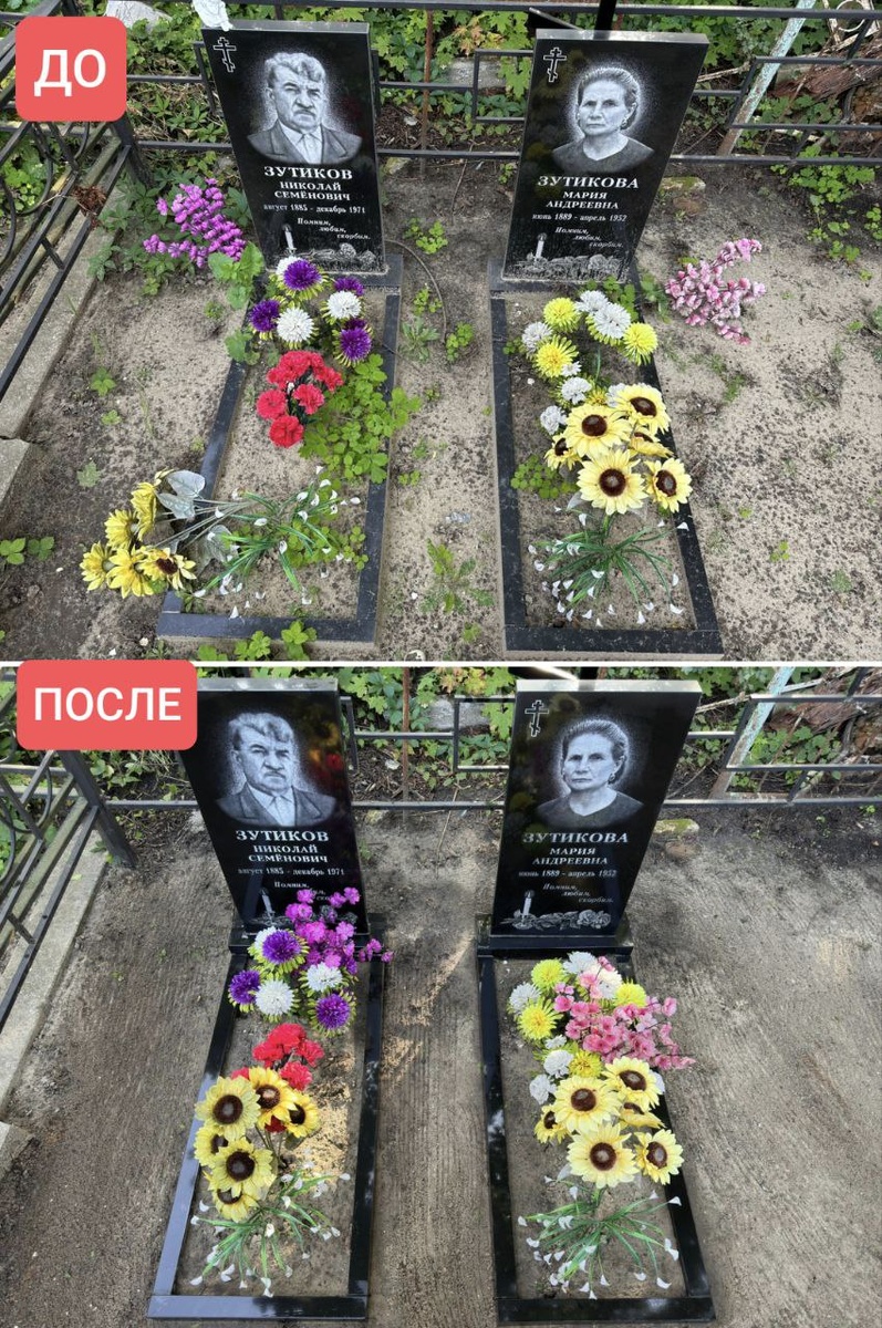 После дождливого лета на кладбищах разрастается сорняк, с деревьев осыпается пыльца и сухие листья. Захоронения становятся захламленными и неопрятными. Наши специалисты готовы навести порядок на могилках. Они умело убирают растительность, мусор, отмывают плиточное покрытие при помощи химических составов, очищают памятники, цветники, ограду от пыли и грязных пятен. При необходимости обновляют портреты и надписи. После работы наших мастеров, захоронения выглядят идеально!