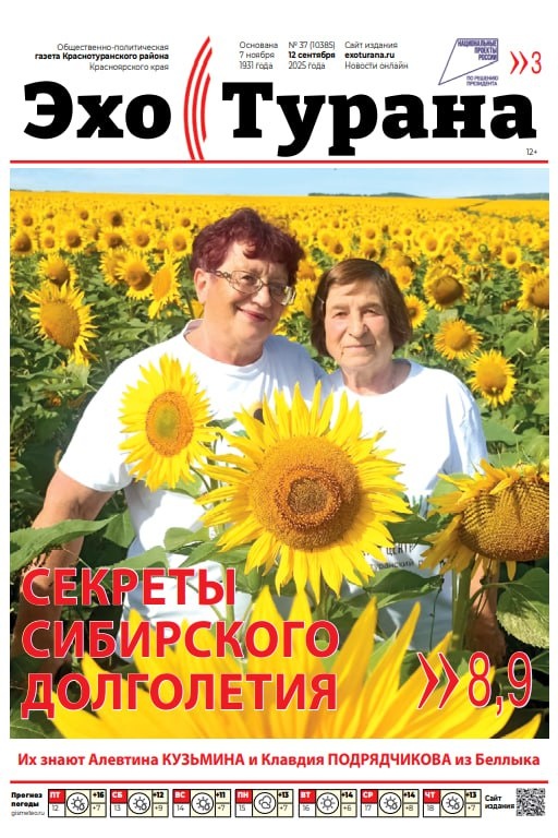 ВНИМАНИЕ! Уже завтра выходит очередной номер газеты «Эхо Турана» Читайте в свежем выпуске: ПРЕОДОЛЕВАЯ СЕБЯ – вдохновляющий пример Николая БУНЯКИНА, героя специальной военной операции ВРЕМЯ ВОЗМОЖНОСТЕЙ – о Краснотуранском районе в цифрах и фактах АКТИВНОЕ ДОЛГОЛЕТИЕ – как устроить свой досуг в «серебряном возрасте» НАШИ ТАЛАНТЫ – эксклюзивный репортаж со встречи с нашим земляком, писателем-фантастом Владимиром ЮРЧЕНКО ПОСЛЕДНИЕ АККОРДЫ ЛЕТА – как завершился творческий сезон на Приморском бульваре А ТАКЖЕ – главные новости прошедшей недели, объявления, реклама, полезная информация и многое другое. Спрашивайте газету в ближайших торговых точках.