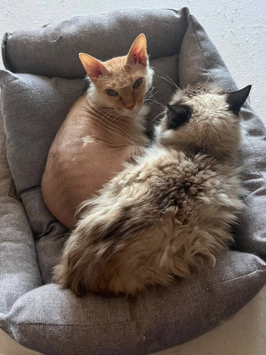 Доброе утро друзья!! Шелби идет на поправку 🙏🏻. Греются с бабулькой Шоколадкой ☺️