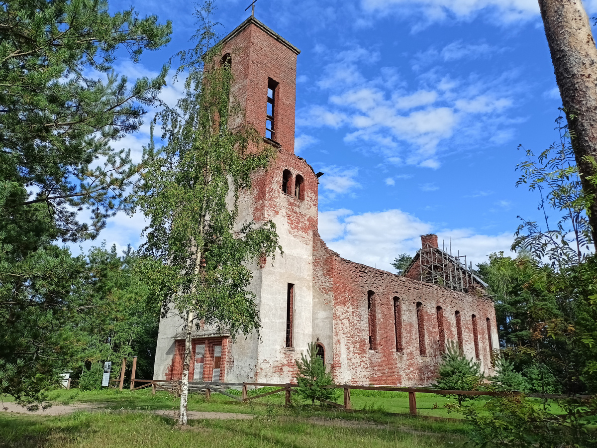 В прошлый раз, когда под изучение финского наследия был выделен целый день, до кирхи в Каннельярви ( пос. Победа) добраться не успел. А добраться определённо стоило... Решение о строительстве церкви было принято в 1925 году. Тогда приход заказал проект самому Уно Ульбергу, который сделал их целых два. Оба варианта получили поддержку, что привело к тому, что строительство стартовало только в 1932 году - оказывается, долго запрягать - не только наша традиция). Оштукатуренная в белый цвет церковь из кирпича была достроена в 1934 году и освящена в июле того же года. Здание было рассчитано на 700 сидячих мест. Кирха была расписана и украшена скульптурами на библейские мотивы. На колокольне располагались часы и ц