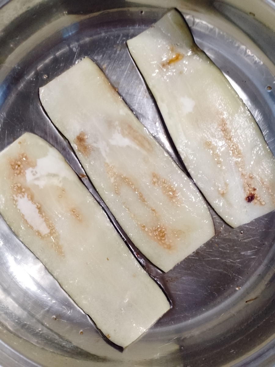 1,5-2 кг. Баклажанов 0,5кг. Сладкого перца 1-2 шт. Острого перца 100 гр. Чеснока 2-3 ст. л. Томатной пасты 25 гр. Уксуса 9% 80гр. Сахара 25 гр. Соли. 50 гр. Растительного масла. (+ масло для обжаривания баклажан) Баклажаны нарезают тонкими пластинками. Обжариваем на растительном масле с двух сторон. Помидоры, перец (сладкий и острый) и чеснок перекручиваем на мясорубке. Добавляем соль, сахар, томатную пасту, уксус и растительное масло. Перемешиваем. После закипания провариваем 5-10 минут. Банки стерилизуем (я это делаю в микроволновке), крышки кипятим. Баклажаны скручиваем в рулетики. Во внутрь можно добавить петрушку с чесноком. Выкладываем рулетики в банку частями. И заливаем соусом. Банки слегка покручиваем, что бы соус равномерно распределился. И таким образом полностью заполняем банки. У меня остался соус, его я разлила по не большим баночкам и тоже закрутила. Можно будет добавить,например, в суп, потушить мясо или фарш. Банки с баклажанами прикрываем крышками, ставим в