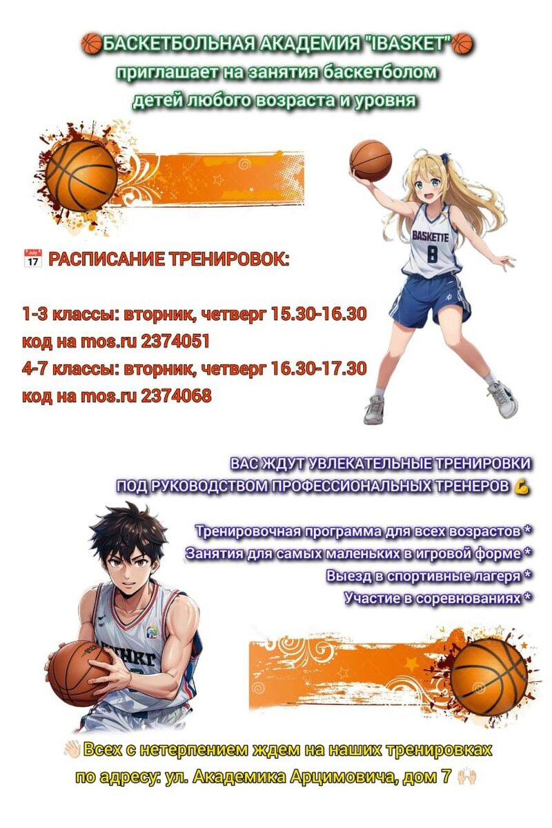 1-3 классы: вторник, четверг 15:30-16:30, код на mos.ru 2374051