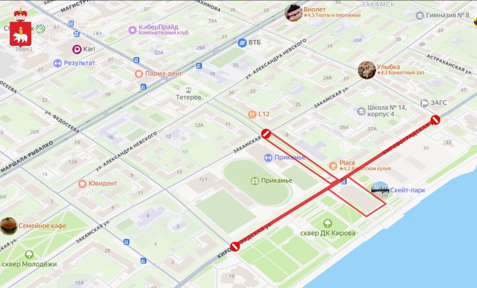 В конце недели в Закамске состоится фестиваль фейерверков «Симфония огня» (0+). В связи с проведением этого зрелищного мероприятия на некоторых улицах города временно изменится дорожное движение. Как уточнили в минтрансе региона, с семи часов вечера 12 сентября и до полуночи 13 сентября будет действовать запрет на стоянку и парковку автомобилей по ул. Ласьвинской (на участке от ул. Закамской до ул. Кировоградской) и по ул. Кировоградской (от ул. Адмирала Нахимова до ул. Федосеева). На этих же отрезках дорог 13 сентября с шести часов вечера и до полуночи будет полностью перекрыто движение любого транспорта. В министерстве обратились к жителям и гостям города с просьбой проявить понимание в связи с ограничениями и заранее продумать маршрут передвижения.