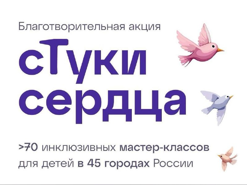 «сТуки сердца». Серия благотворительных инклюзивных мастер-классов в поддержку детей с СМА, по изготовлению кормушек. На мастер-классы будут дети подопечные фонда «Звезда на ладошке». Но также все желающие присоединиться и поучаствовать в этом светлом и добром событии. Стоимость участия в мастер-классе 2000 рублей - все вырученные средства в полном объеме пойдут на помощь в лечении и реабилитации детей подопечных фонда «Звезда на ладошке». Чтобы записаться на мастер-класс и узнать все подробности переходите по ссылке на официальную страницу акции «сТуки сердца» (оплата напрямую поступит в фонд «Звезда на ладошке»). Ростов-на-Дону 14 и 21 сентября в 11-00 🫠 Детские мероприятия Ростов-на-Дону. Я местный!