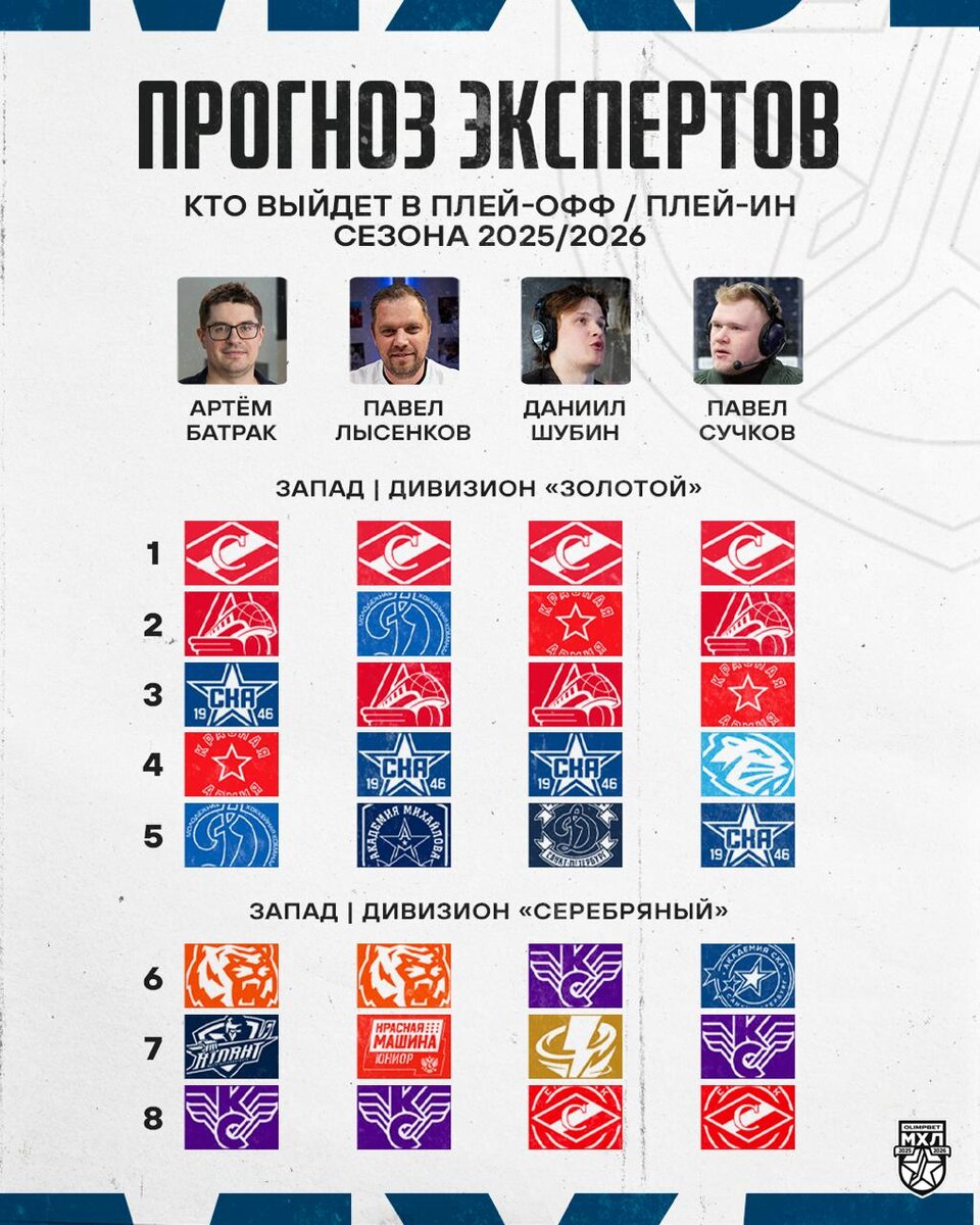 «Спартак», «Локо» и «СКА-1946» будут бороться за первые строчки, они сильнее остальных» Эксперты Молодежной хоккейной лиги назвали своих фаворитов на Западе: Артём Батрак верит в действующих чемпионов, Павел Лысенков прогнозирует «Красной Машине - Юниор» плей-ин в дебютном сезоне, Даниил Шубин уверен, что «Красная Армия» удивит всех в этом году, а Павел Сучков поддерживает «Динамо-Шинник». Полные прогнозы читаем по ссылке, а сверимся уже весной! 🔗 https://mhl.khl.ru/news/20092/1167307/ 🏒@mhlrus