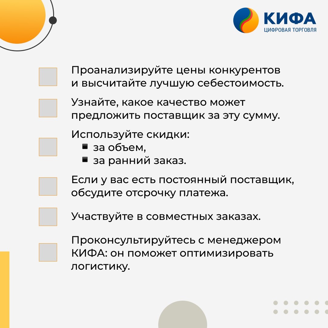 Рентабельность 100%, а маржинальность — 16%. Знакомо? Комиссии маркетплейсов, налоги и накладные расходы «съедают» до 70% от прибыли. Получается, что товар с условной себестоимостью 400 руб., не имеет смысла продавать за 1400 руб. При этом покупатель ждет скидок и придирчиво сравнивает цены. Разница даже в 10 руб. играет роль. Тогда что делать😎 Минимизировать себестоимость, сохранив качество. Как? Подготовили чек-лист базовых шагов. 👆 Один нюанс Если речь идет о Китае, то большую роль в вопросе себестоимости играют отношения с партнером и репутация. Найти надежных поставщиков и заручиться их лояльностью — задача, которая решается годами сотрудничества или нетворкингом и неформальным общением. Где получить нужный формат взаимодействия? Ближайший пример — культурная программа инвестиционного и торгового форума. #КИФАдляБизнеса