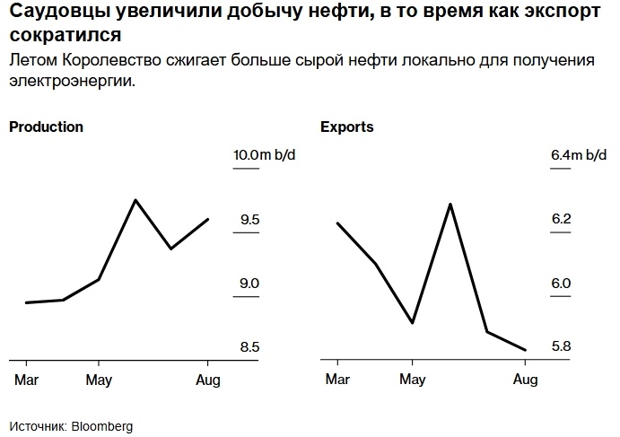 Экспорт нефти из Саудовской Аравии в сентябре вырастет на полмиллиона баррелей в день из-за увеличения добычи и снижения внутреннего спроса. Внутренний спрос сократится на треть, опустившись ниже 400 000 баррелей в день в октябре. В этом месяце ожидается значительное увеличение экспорта нефти из Саудовской Аравии. Это связано с тем, что рост добычи и снижение внутреннего спроса после пиковых летних значений освобождают дополнительные объёмы нефти, усиливая опасения о возможном профиците на рынке. По информации аналитической компании Kpler, экспорт сырой нефти в сентябре вырастет примерно на полмиллиона баррелей в день по сравнению с предыдущим месяцем. Прогнозируется, что предложение продолжит увеличиваться к концу года и в 2026 году. Это связано с наращиванием добычи в Саудовской Аравии и запуском нового масштабного газового проекта, который освободит больше нефти для продажи за границу. Обычно спрос на сырую нефть в королевстве растёт летом из-за необходимости кондиционирования возду