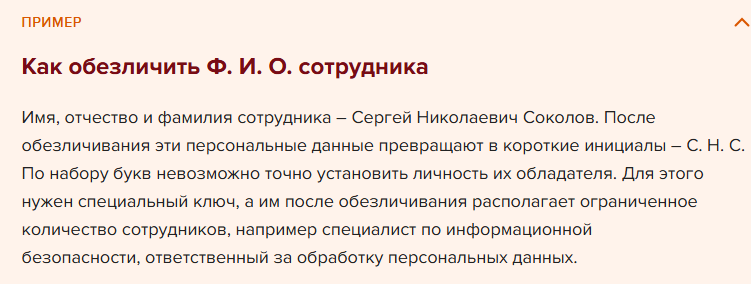 Необходимость обезличить данные может возникнуть, например, при работе с персданными уволенных работников. Когда сотрудник увольняется, работодатель достигает цели обработки сведений о работнике – трудовые отношения прекращаются. Это означает, что данные нужно либо уничтожить, либо обезличить, если нет иных правовых оснований для их обработки.