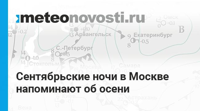 Сентябрь радует москвичей и гостей столицы солнечными и теплыми днями. Но по ночам и ранним утром уже свежо. Минувшей ночью в столичном регионе минимальная температура соответствовала климатической норме. На опорной метеостанции Москвы ВДНХ было 7.7, в центре города было заметно теплее, на Балчуге немногим более 12 градусов, в Брюсовом переулке 13.6. Но есть районы, где минувшая ночь выдалась довольно свежей: в районе МКАД 24 км столбик термометра опустился до отметки 5.3, в Бутово и Зеленограде до 5.6 градусов. Но самая холодная ночь зафиксирована на территории Новой Москвы: в Наро-Фоминске 4.1, в Михайловском минимальная температура немного не дотянула даже до +3 градусов. В Подмосковье, в условия ясной погоды и отсутствии ветра, воздух остывал более заметно. В Клину и Н.Иерусалиме до 3.5, в Зарайске и Луховицах до 3.8 градусов, в Волоколамске и Можайске чуть более 4 градусов. В пятницу, последний рабочий день этой недели, ночью в столичном регионе о... Перейти на сайт Прогноз п