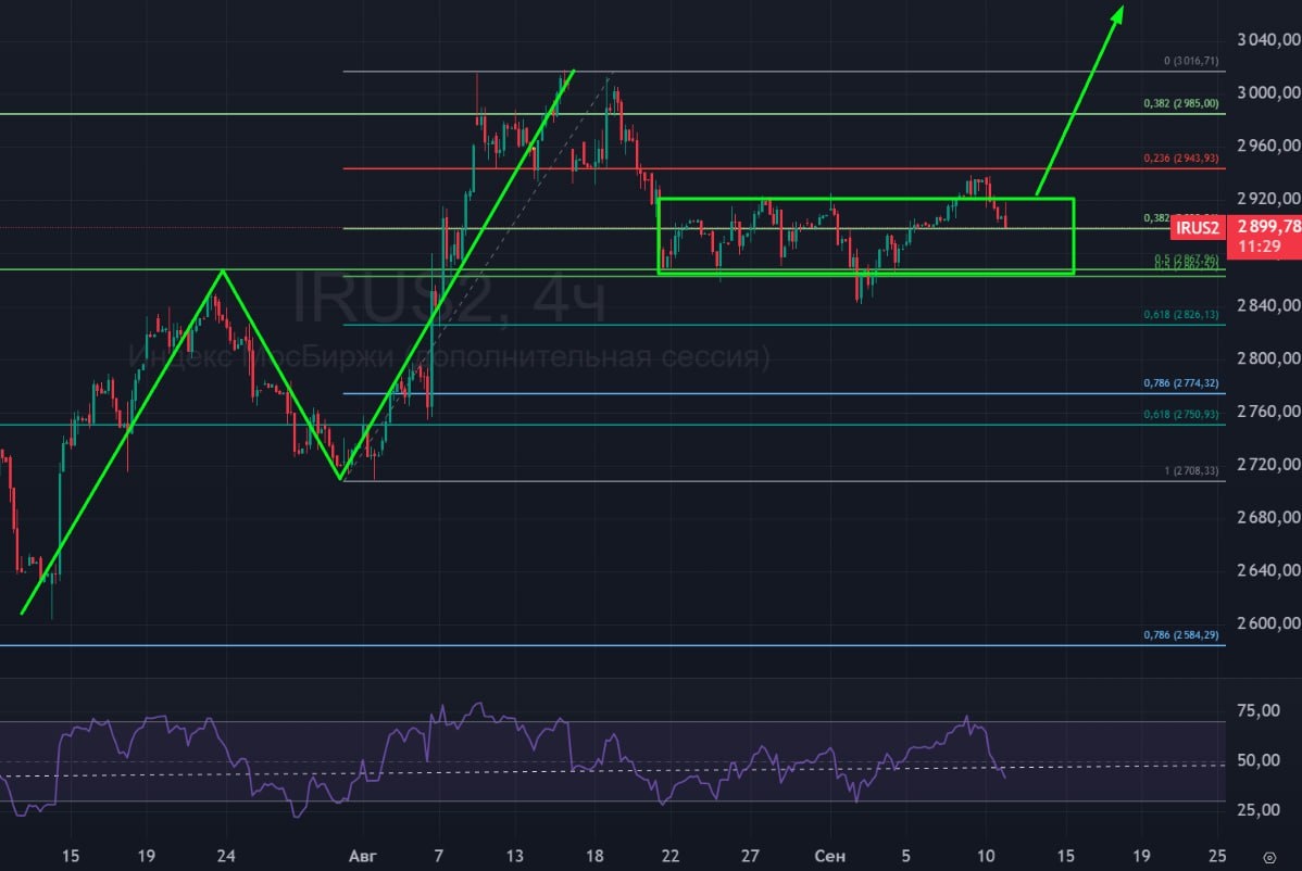 🏦 Индекс Мосбиржи 🟢Индекс пришел на 2900! В середину своего накопления. Выход вверх не случился при пробое вверх. Но новостей для слива рынка не видно. Предполагаю, что снижение происходит по вине хайпа в валюте. Физики бросают рынок акций, который измотал своим болтанием, и переходят в валютную ракету. 🚗 Всё это, по моему мнению, должно закончиться противоположно ожиданиям - валюту отвезут сильно вниз с передавливанием, а рынок акций сильно вверх. ХЗ на пороге чего мы сейчас находимся, но очень интересно! #индекс #рубль #индексмосбиржи #ММВБ #IRUS #MXI #MIX #IMOEXF #bogdanoffinvest