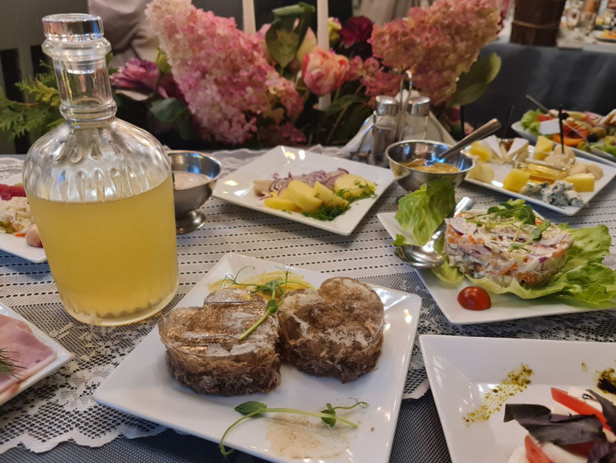 Похвастаться в доказательство, однако ж, мне пока особо нечем. В запаре я забыла что у меня вообще есть телефон и в итоге единственное фото, сделанное мной на память, - это натюрморт из хреновухи и холодца в форме сердечек. Что, впрочем, очень мило и тематично)
