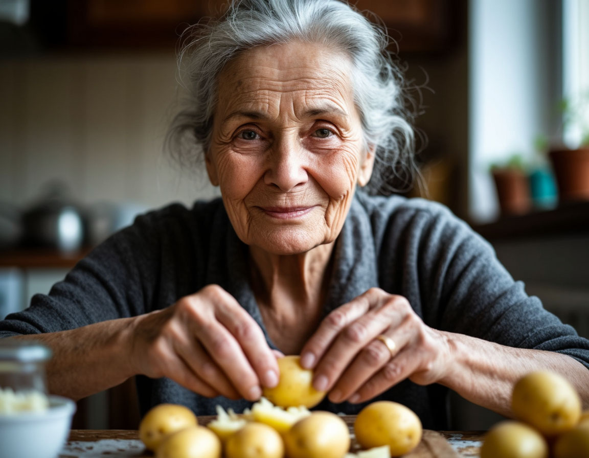 Тамара Ивановна сидела на кухне и спокойно чистила картошку здоровой рукой, а та самая "сломанная" ловко держала клубень. Когда сын Сергей распахнул дверь, она даже не вздрогнула — словно ждала этого момента.