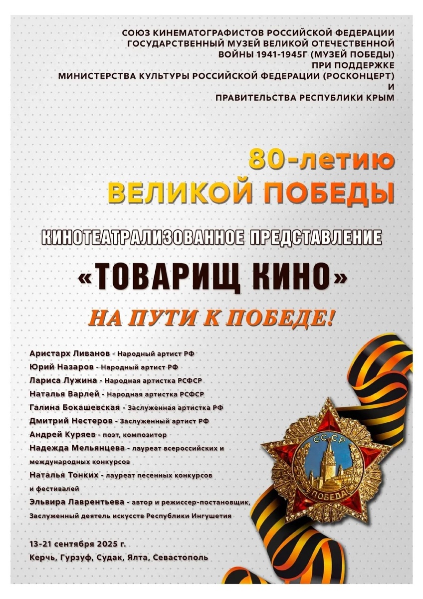 В Керчи состоится кинотеатрализованное представление «Товарищ кино» «НА ПУТИ К ПОБЕДЕ