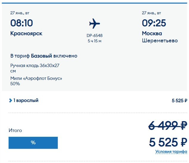 🛩 Распродажа Победы! 🛒 Покупаем: до 23:59 МСК 12.09 ✈️ Летаем: с 15.09 по 28.03 По промокоду AEROMAN скидка 15% на все направления на тариф «Базовый» и до 20% «Выгодный» и «Максимум». Из Красноярска есть шикарная Москва за 5525₽! https://vk.cc/cPpIXF #kja_sales @KJA