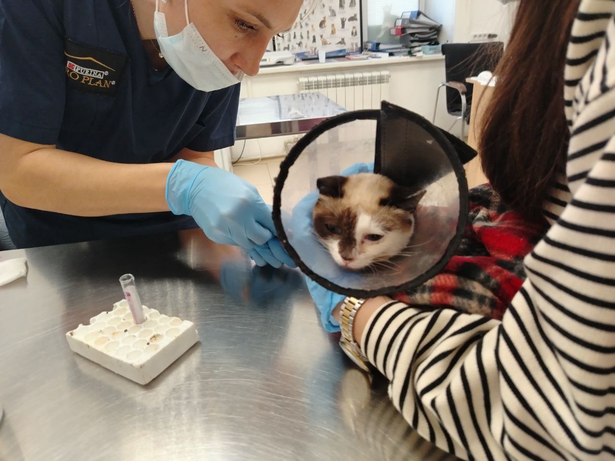Сегодня поездка в клинику "Свой ВЕТ Доктор" носила немного иной характер 💖 Поездка изначально была запланирована с целью погашения долгов. Да, мы снизили долги в филиале на ул. Восход 46 ещё на 15521 ₽, но это не всё, что сделали за сегодня 🔥 Хотим поделиться историей кошки Мисы - она была обнаружена в с. Боровом, где выживала с другими кошками, так же борящимися за жизнь. Её обнаружила группа неравнодушных людей, и занялись процессом их спасения. Часть кошек пока остаётся там, люди занимаются вопросом оборудования им уголка на зиму, пока для них не найдётся временных или постоянных домов. Мису вывезли практически сразу, и сейчас она находится на передержке. Проблемы со здоровьем у неё имеются, поэтому жизнь на улице не для неё. Да и вообще ни для кого из них не подходит. Сегодня мы помогли ей сдать анализ крови на проверку вирусов лейкоз/иммунодефицит. Стерилизовали Мису самостоятельно без нашего участия, и следят за её состоянием. Ну а мы будем ждать результатов крови и надеяться