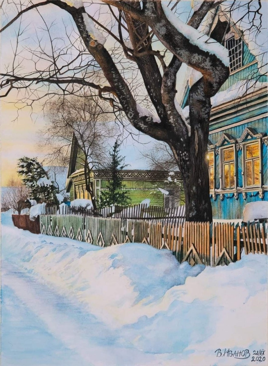 Русские пейзажи🇷🇺 Художник Владимир Иванов родился в 1983 году в Москве. В 1998 году окончил Московскую художественную школу №8 им. Врубеля. Затем выбрал музыку и стал профессиональным музыкантом-мультиинструменталистом. Окончил Академическое музыкальное училище при Московской консерватории в 2002 году и РАМ им. Гнесиных по специальности «артист и педагог» в 2007 году. В разное время работал в оркестре «Фонограф симфо-джаз», АБКО им. Силантьева и в оркестре Московского цирка Никулина на Цветном бульваре. Но в 2011 году возобновил занятия рисунком и живописью. Создал серию портретов артистов цирка и эстрады. Работает преимущественно в классической реалистичной манере акварелью и маслом. С 2018 года — член Союза акварелистов России и Союза русских художников. Сегодня, основная тема творчества Владимира — это пейзажи русской глубинки, провинциальные города, какими они были 100 лет назад, какими запомнились художнику в детстве и какими стали сейчас. #Мастера_акварели Любители акваре