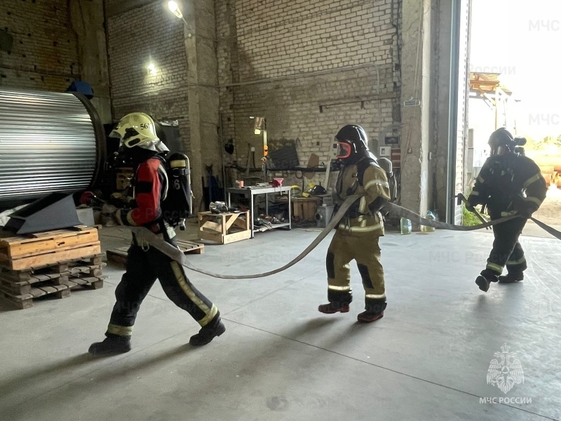 В Мантурово огнеборцы отработали навыки тушения пожара на объекте деревообработки