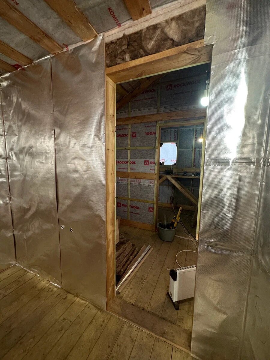 👉 В наших проектах мы используем именно каменную вату толщиной 150 и 200 мм. Такой слой обеспечивает надёжную теплоизоляцию и позволяет бане держать жар максимально долго, даже зимой.