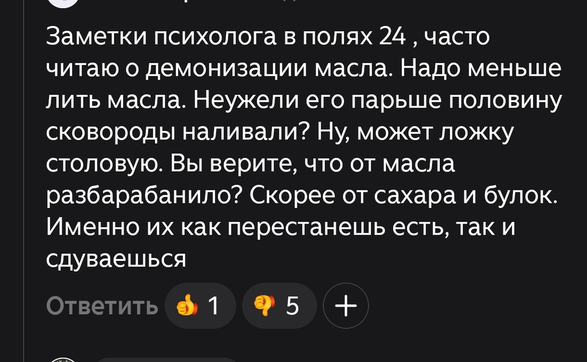 «Ну неужели люди половину сковороды маслом заливают? Максимум ложку! А вот сахар и булки – вот они главный враг!»