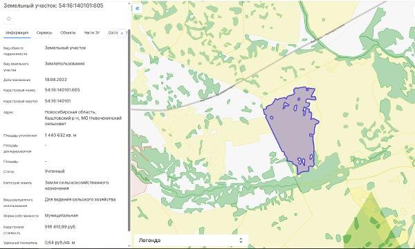 Название: Земельный участок из земель сельскохозяйственного назначения, кадастровый номер: 54:16:140101:605, общей площадью 1440632 кв.м