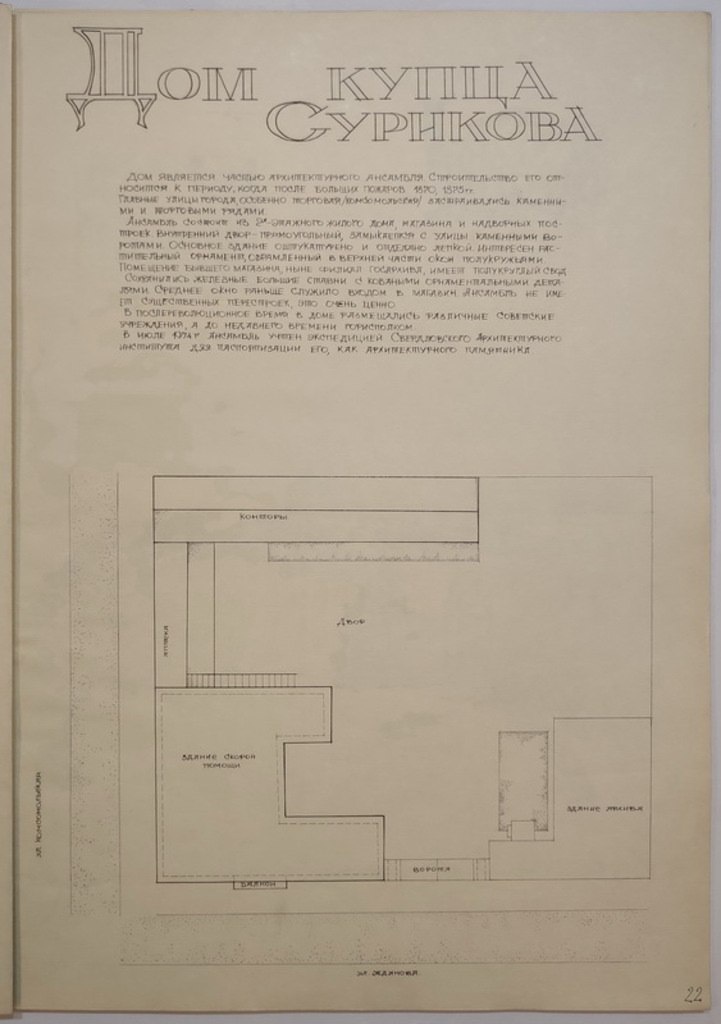 1979 / г. Шадринск. Церкви и усадьбы. Материалы обмерной практики. Листы 22-23. Усадьба купца Сурикова