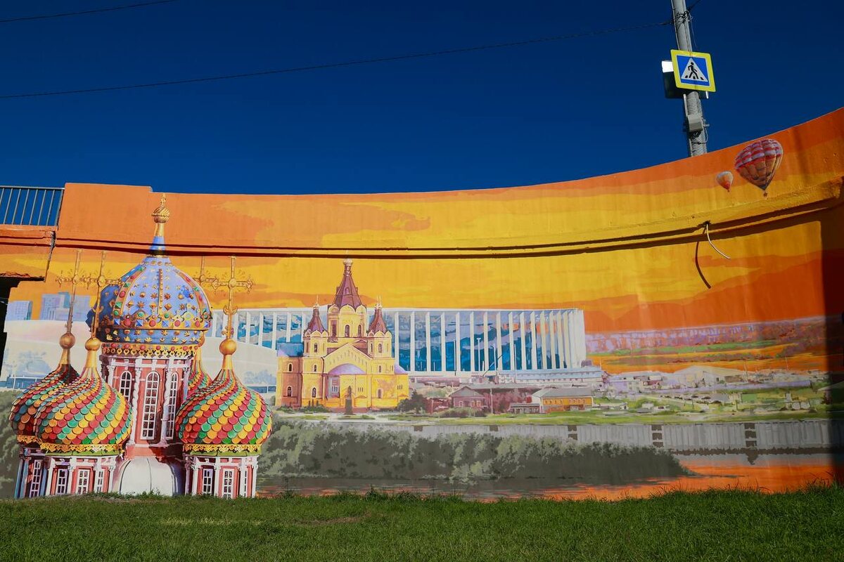 На опоре Канавинского моста появилось новое граффити, посвященное символам Нижнего Новгорода и его знаменитым закатам. Работы полностью завершены, сообщил в социальных сетях мэр города Юрий Шалабаев. По словам главы города, художники изобразили главные ценности Нижнего Новгорода: место основания города — слияние Волги и Оки, Собор Александра Невского и Рождественскую церковь как символы веры и истории, а также семью и детей. "Красиво. По-нашему", — отметил мэр. Директор департамента социальных коммуникаций и молодежной политики Артур Штоян уточнил, что тематику рисунка выбрали сами нижегородцы. Он напомнил, что в прошлом году жители голосовали, сохранить ли на мосту "Крокодила" или заменить его новым изображением. Большинство выбрали сохранить старое граффити, но многие предлагали изобразить нижегородские закаты. В итоге новое панно появилось на другой стороне моста. На рисунке можно увидеть многодетную семью как символ будущего страны, фестиваль воздушных шаров, виды с набережной Федо