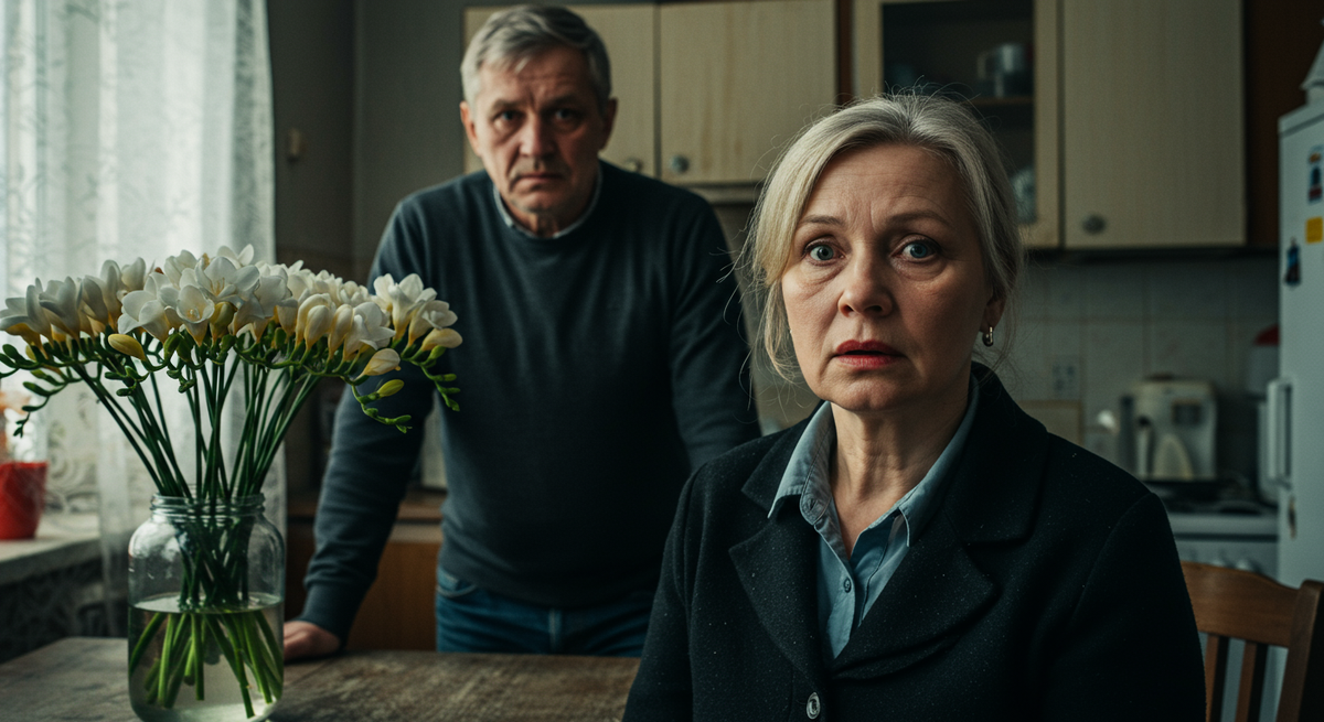 Елена замерла на пороге кухни, не в силах сделать шаг. Пальто стало тяжёлым, давило на плечи. Это были не её цветы. Дмитрий дарил ей цветы трижды в год: на день рождения, восьмое марта и годовщину свадьбы. И это всегда были розы. Бордовые, как тёмное вино. Традиция, которой было почти столько же лет, сколько их браку. Тридцать лет. А эти… эти были для кого-то другого.
