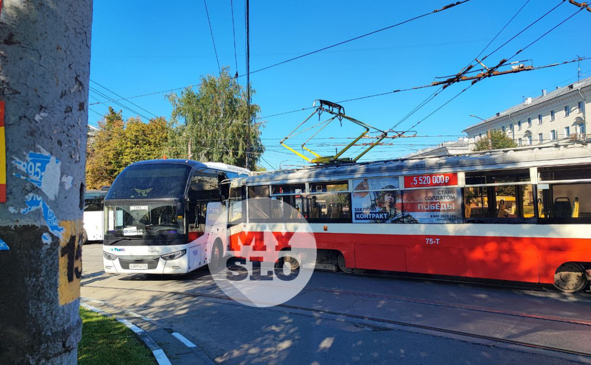 На проспекте Ленина возле автовокзала столкнулись трамвай и автобус