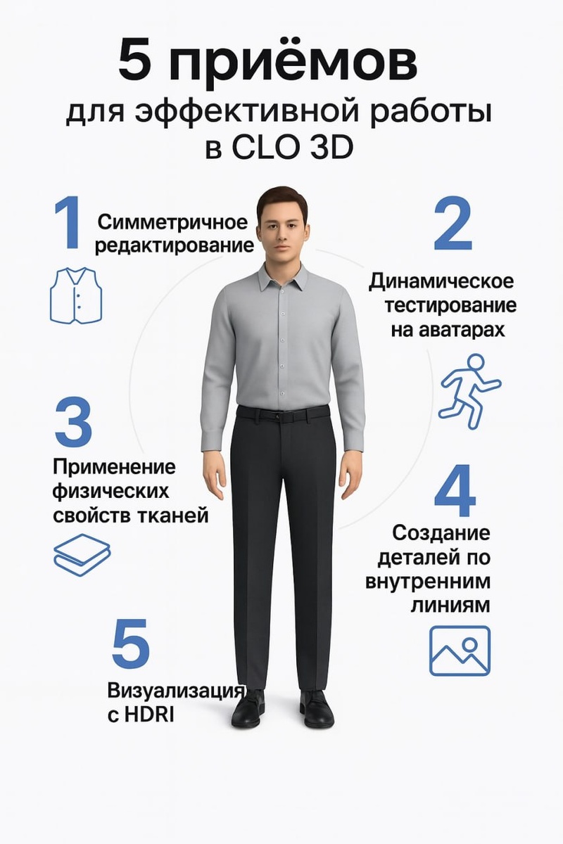 ✨ Попробуйте эти приёмы в работе — и Вы увидите, насколько Clo3D может быть удобным инструментом не только для визуализации, но и для исследования посадки, материалов и кроя.