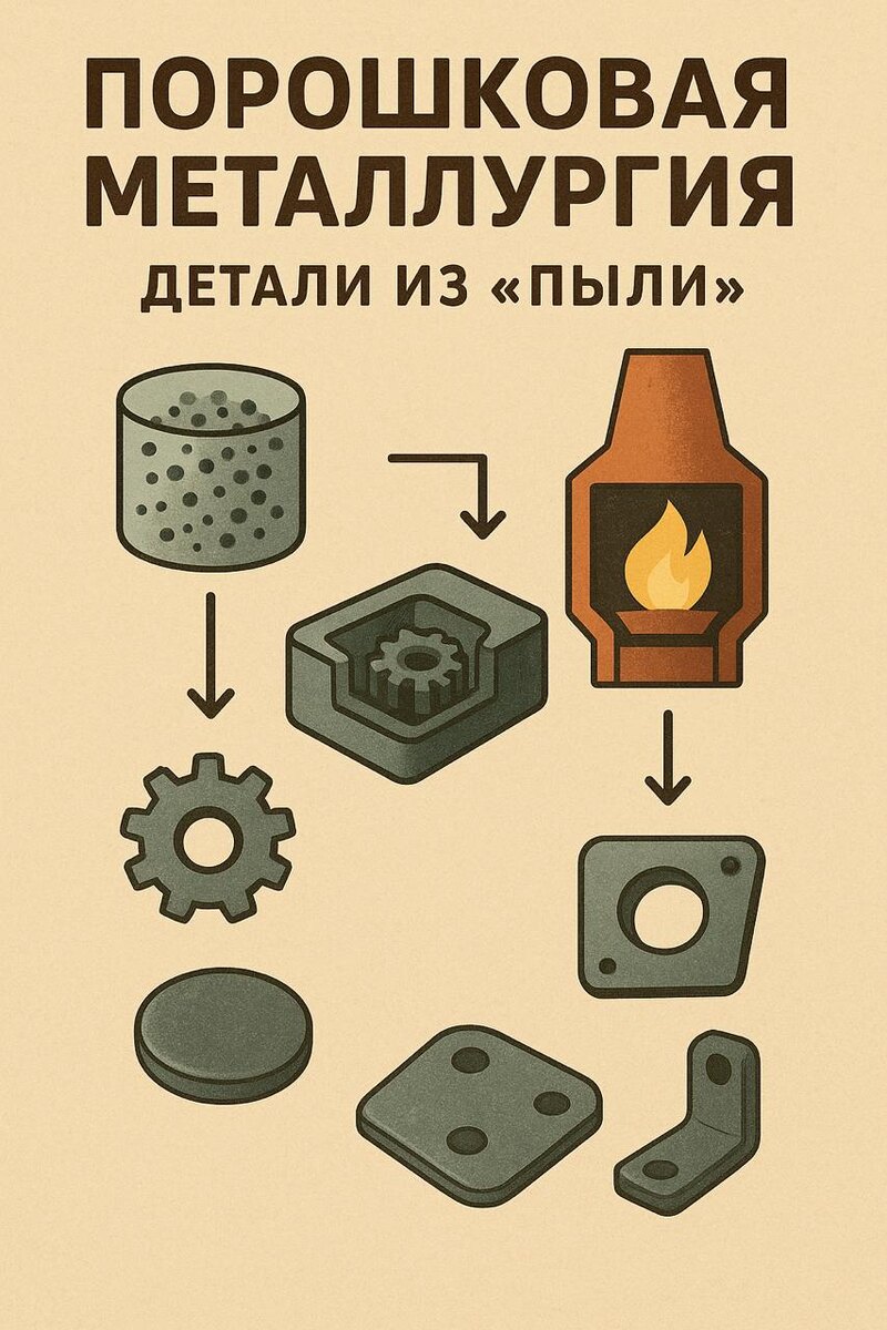 Обычные металлические детали получают литьём, ковкой или обработкой проката. Но есть способ необычнее — порошковая металлургия. Здесь основу составляют мельчайшие металлические порошки, из которых формируют готовое изделие Этапы процесса: 1. Изготовление порошка — металл измельчают (механически или распылением расплава) 2. Формование — порошок засыпают в пресс-форму и уплотняют 3. Спекание — заготовку нагревают до высокой температуры, частицы «свариваются» между собой, образуя прочный материал 4. Доп. обработка — шлифовка, пропитка маслом, нанесение покрытий Преимущества метода: • высокая точность формы и размеров • минимальные отходы • можно создавать материалы с особыми свойствами (например, пористые подшипники, которые сами смазываются) Примеры изделий: подшипники, фильтры, детали для авиации, стоматологические импланты, даже режущий инструмент Вывод: порошковая металлургия позволяет «лепить» металл так же, как пластик или керамику — открывая новые возможности для техники и мед