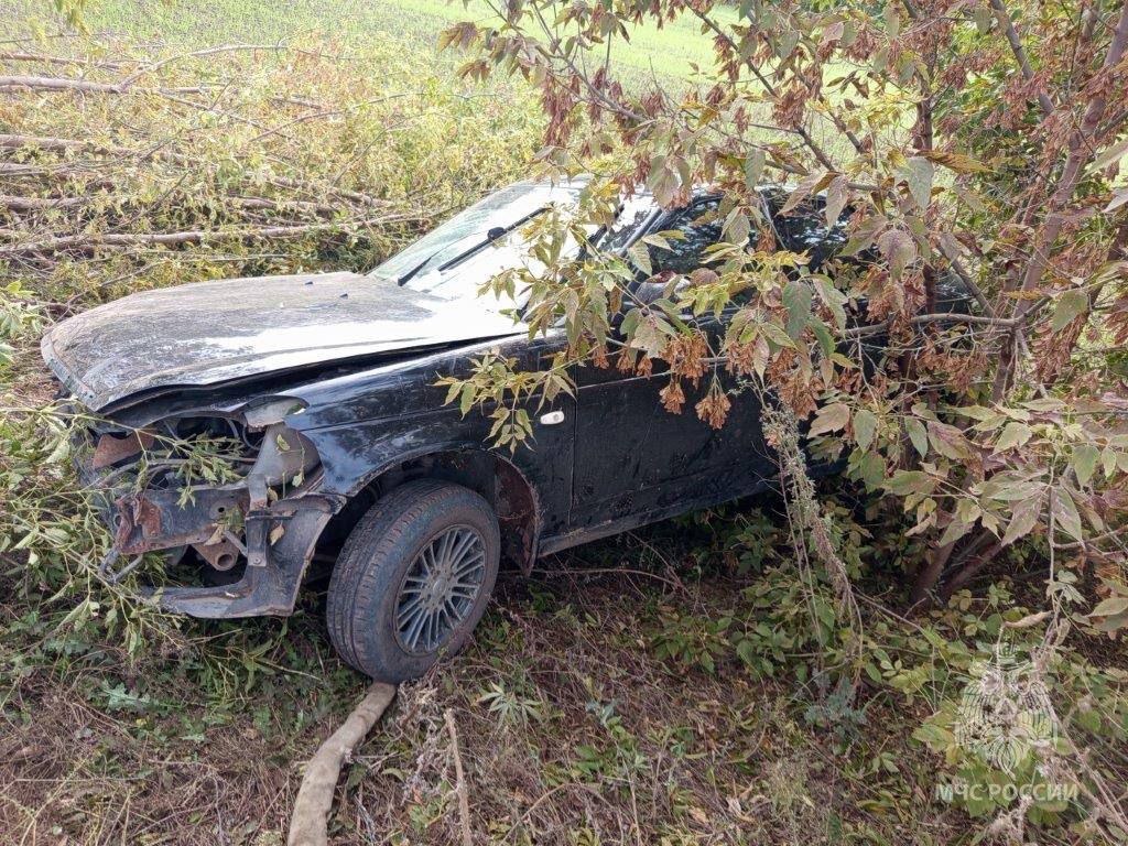 В Грачевском районе на подъезде к селу Абрышкино автомобиль съехал в кювет. Два человека получили травмы, один погиб. Сотрудники МЧС извлекли тело погибшего из автомобиля.