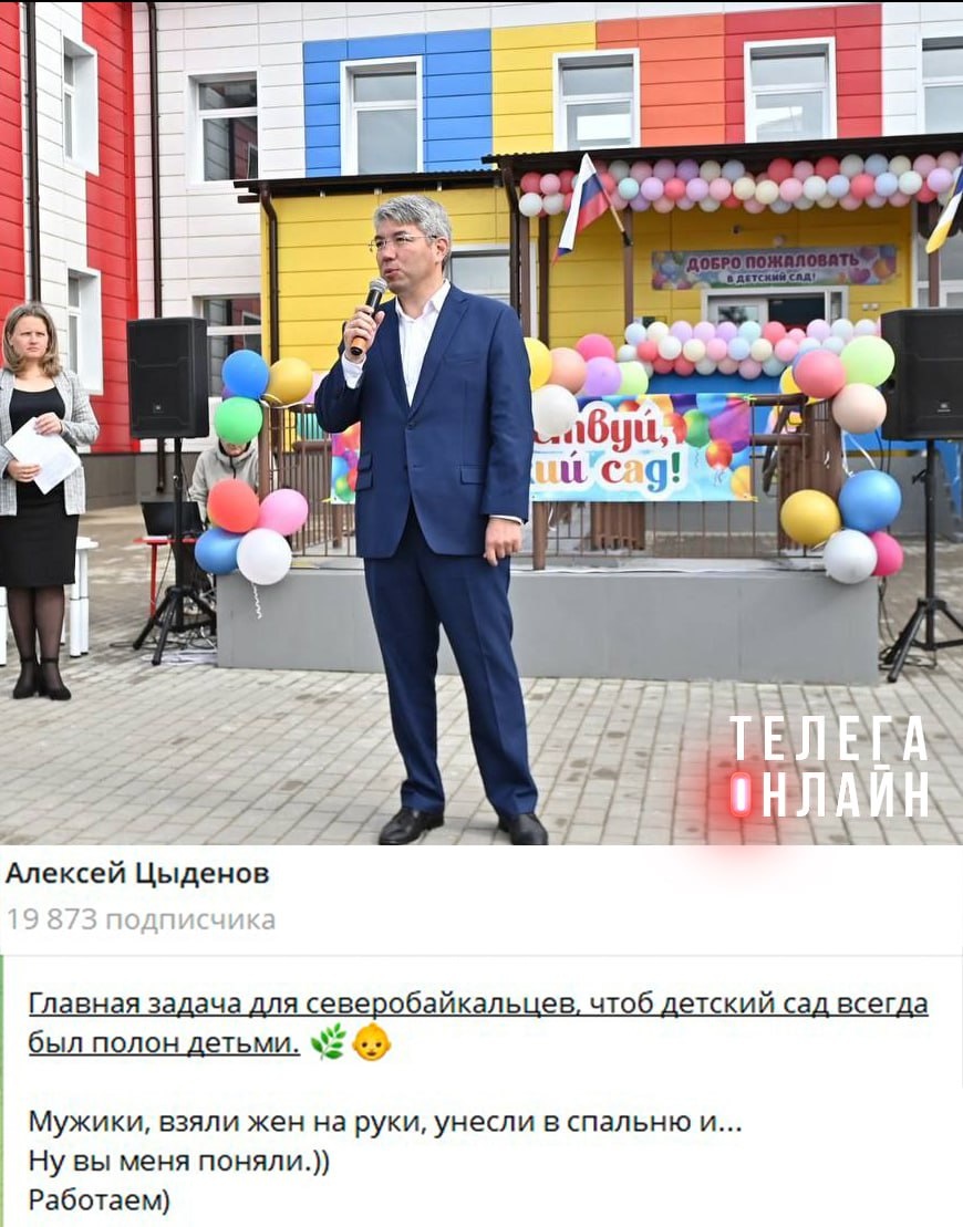 Мало построить садик, надо наполнить садик Глава Бурятии Цыденов решил зрить в корень в вопросах демографии и обновления социальной инфраструктуры. 👍/👎— как тебе такое напутствие от главы региона? 🚲 Подпишись на Телега Online