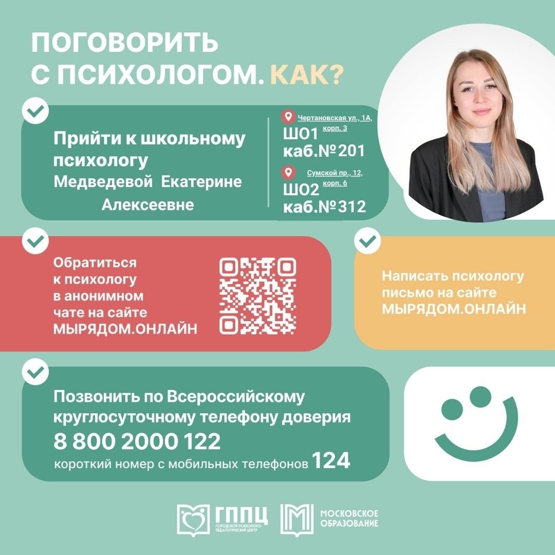 ШКОЛЬНЫЙ ПСИХОЛОГ 🎓 Дорогие ребята❗ 🏫 Школьная жизнь насыщена событиями, эмоциями и открытиями. Иногда справиться с ними одному бывает непросто. Может показаться, что никто вас не понимает или что ваши переживания незначительны. Но это не так❗ 👤 В школе работает психолог, готовый выслушать каждого из вас. Неважно, что вас беспокоит: 🔸 Конфликты с друзьями. 🔸 Сложности в учёбе. 🔸 Переживания из-за оценок. 🔸 Стресс перед экзаменами. 🔸Личные проблемы. 💭 Или просто желание поговорить с понимающим человеком. 📣 Помните: обратиться за помощью — это не признак слабости, а проявление заботы о себе. Не откладывайте заботу о своём эмоциональном здоровье. #ДОНМ #НашиЛица #Школа1179