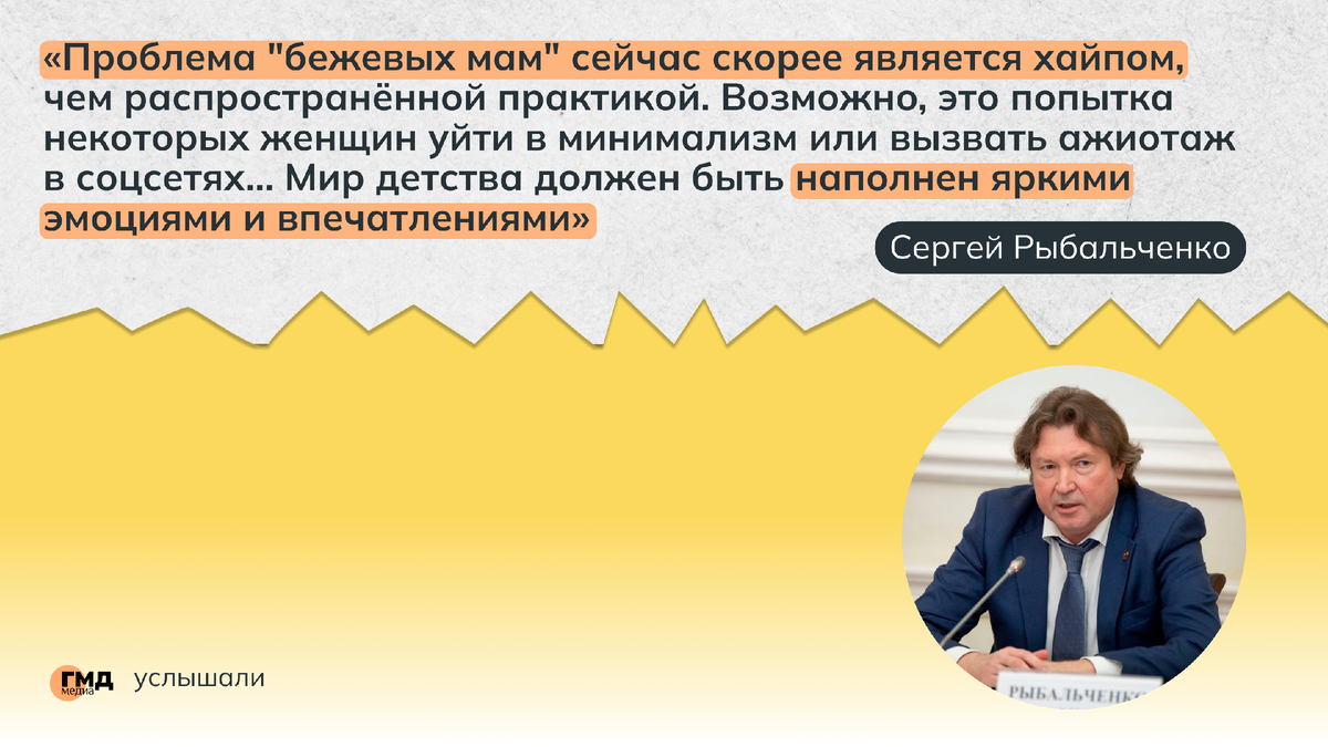 ❓ Что произошло. Сергей Рыбальченко, председатель комиссии Общественной палаты по демографии, защите семьи, детей и традиционных семейных ценностей, заявил ТАСС, что тренд из соцсетей на «бежевых мам» может навредить детям.