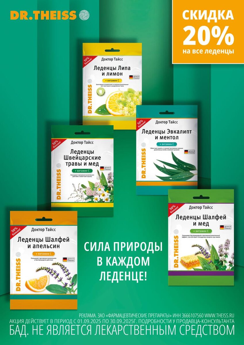 🔈 Акции сентября в “Картинках” — выгода до 2️⃣5️⃣🔤 🗓 до 30 сентября во всех аптеках сети и онлайн Осень — это не «ой, опять заболели», а «давай брать по акции и не болеть» 💪 Мы собрали всё нужное в одном посте — от простуды до массажа и даже от вредных привычек. Всё честно, с выгодой 👇 💊 Медтехника OMRON и CS MEDICA • Вибромассажёр CS-V1 — скидка 3️⃣0️⃣0️⃣🔤 • Подушка массажная CS-CR5 — скидка 4️⃣0️⃣0️⃣🔤 • Небулайзеры Omron NE-C17 и NE-C24 — скидка 4️⃣0️⃣0️⃣🔤 • Тонометр Omron M2 Eco — скидка 3️⃣0️⃣0️⃣🔤 😷 Простуда и горло • Гексорал® — табл. и раствор (все вкусы) – скидка 6️⃣0️⃣ 🔤 • Доктор Мом — пастилки, сироп, мазь — скидка до 8️⃣0️⃣ 🔤 • Dr. Theiss® леденцы — все вкусы — скидка 2️⃣0️⃣🔤 😳 Никоретте® — когда пора завязывать • Жвачки и таблетки 2 и 4 мг — Скидка до 3️⃣0️⃣0️⃣ 🔤 • Спреи — Скидка до 3️⃣0️⃣0️⃣ 🔤 😋 Пищеварение и комфорт • Мотилегаз® — Скидка до 9️⃣0️⃣ 🔤 🤒 Симптоматические средства • Ринзасип — Скидка до 40 🔤 • Тизин Классик и Пантенол — Скидка до 80
