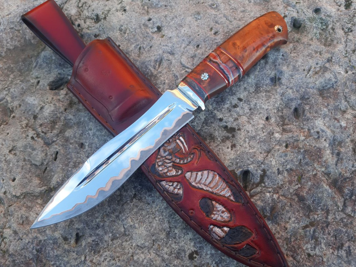 Нож Каратель Клинок-ламинат,обкладки -40х13 Центр-D2,через медь Формованые ножны