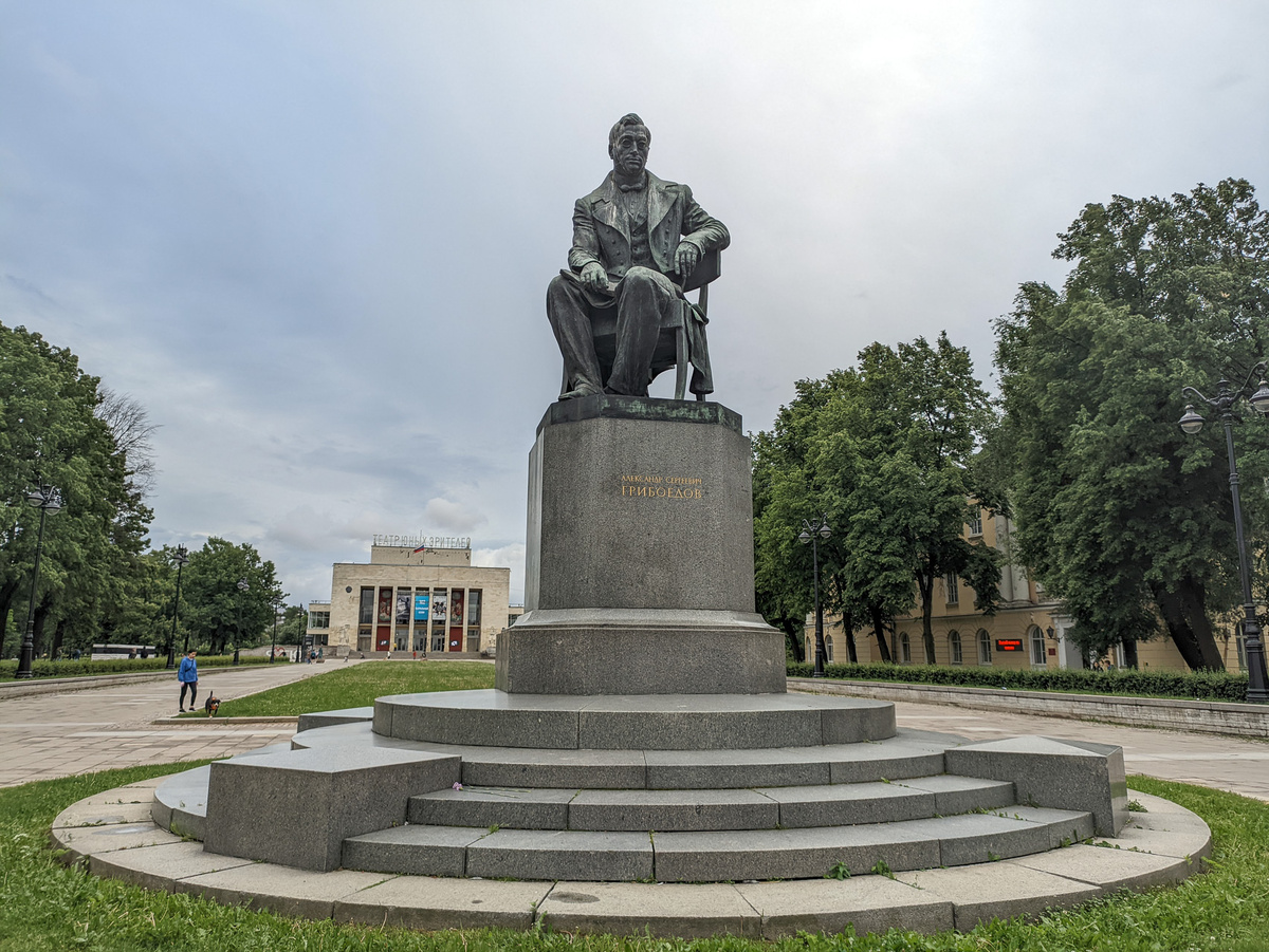 Памятник Александру Сергеевичу Грибоедову был установлен на Пионерской площади перед Театром юных зрителей в 1959 году. Скульптурный монумент был создан по проекту скульптора Всеволода Всеволодовича Лишева и архитектора Всеволода Ивановича Яковлева. Памятник выполнен из бронзы, высота скульптуры составляет 3 метра, а гранитного постамента — 3,9 метра. Памятник является объектом культурного наследия федерального значения.