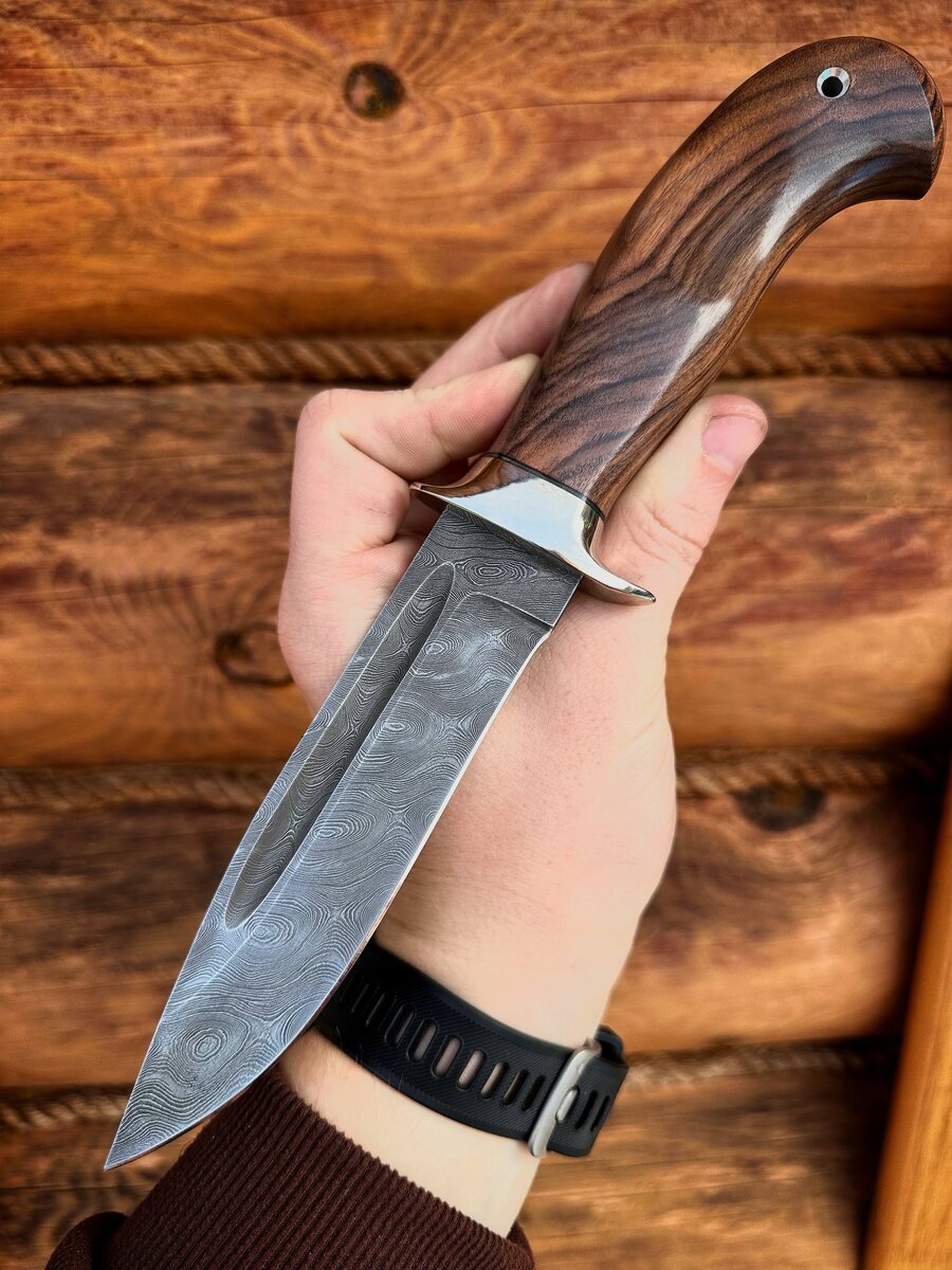 🪓 Нож «Пехотинец» из дамасской стали — прочность и стиль для настоящих ценителей! В наличии: легендарный «Пехотинец» с клинком из дамасской стали (950 слоёв!) и выразительным долом для дополнительной жёсткости. Спуски от середины клинка обеспечивают отличную стойкость к боковым нагрузкам — надёжный помощник для охоты, туризма и коллекции. Материалы: - Рукоять — мельхиор с двойным упором и вставкой из благородного палисандра: комфорт, долговечность, классика ручной работы. - Твёрдость клинка 62 HRC — идеальное сочетание остроты и износостойкости. В комплекте — ножны из натуральной кожи. *По желанию — формованные ножны (+8000 руб.).* Цена: ~10 040₽~ → 8 032₽ по акции 📩 Для заказа пишите в Telegram: [@Nazarklinokbot](https://t.me/Nazarklinokbot) или WhatsApp/Viber: [ +7 910 134-38-31](https://wa.me/79101343831) #кузница_назарова #ножи_ручнойработы #дамаск #охотничийнож #туризм #подарокмужчине #ручнаяработа #коллекция #pehotinec