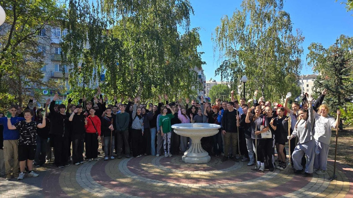 Ученики лицея вместе с учителями с энтузиазмом подключились к осеннему месяцу добрых поступков, убрав сквер возле трикотажной фабрики