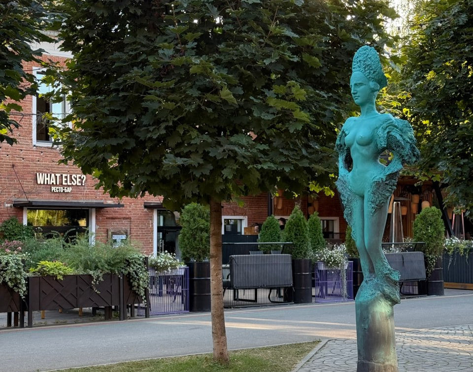 В городском пространстве «Искра» появился новый яркий арт-объект — античная женская фигура, выкрашенная в ярко-бирюзовый цвет. Скульптуру поставили прямо посреди дорожки в центре городского пространства.