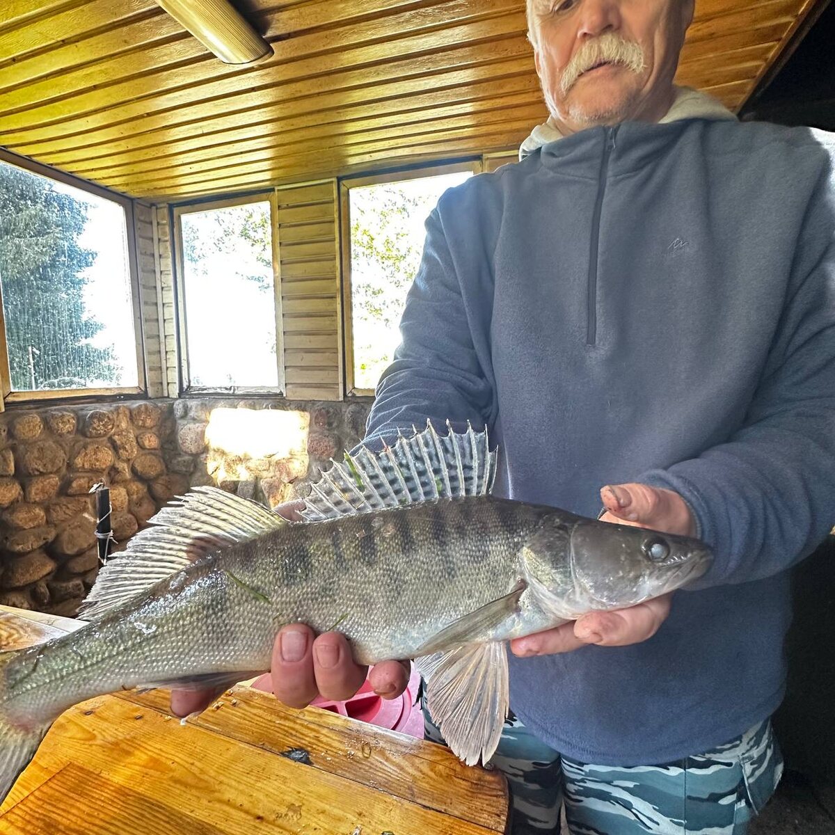 Сергей с утра как всегда был на высоте- плюс еще один судак!!! Главное ведь не рыба, а человек! Сергей из тех рыбаков, кто с радостью