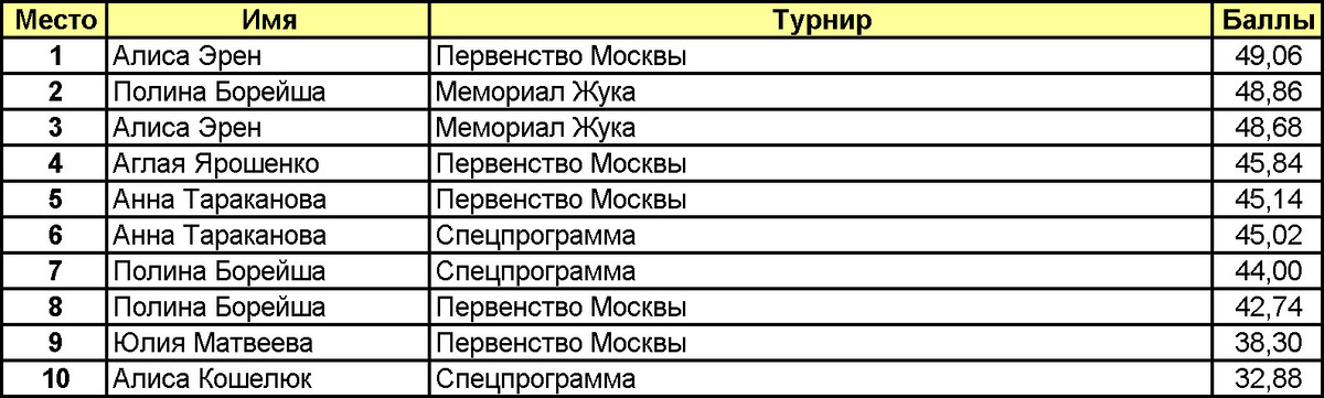 Лучшая десятка в элементах и специальных программах по всем видам во всех категориях: