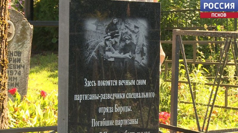 Новый памятник на могиле партизан-разведчиков из специального отряда Бороды, погибших в сорок четвертом после выполнения очередного задания, установили сегодня на кладбище деревни Красные Пруды Псковского района. Памятный митинг собрал и местных жителей, и представителей власти, и школьников. О незабытых страницах истории и вкладе партизан в победу расскажет Анастасия Николаева.