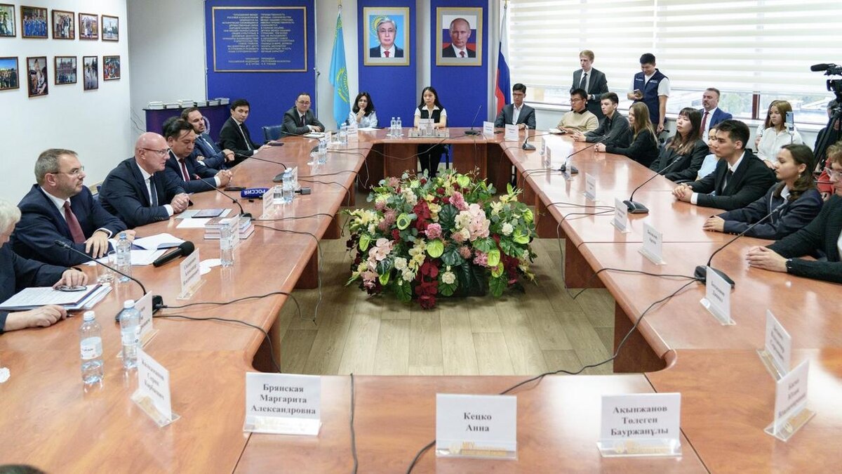 Филиалы в Казахстане – МГИМО и МГУ ❗️Дмитрий Чернышенко встретился с преподавателями и студентами филиалов МГУ и МГИМО в Казахстане. ➡️В рамках рабочего визита в Казахстан вице-премьер Дмитрий Чернышенко оценил инфраструктуру филиалов МГИМО и МГУ, а также пообщался с их руководством, преподавателями и студентами. Филиал МГИМО получил лицензию и принял в новом учебном году 100 первых студентов. 💬Дмитрий Чернышенко отметил: Это не просто образовательное учреждение, а интеллектуальная платформа, где формируется элита дипломатической и научной мысли ➡️Научно-образовательные связи занимают важное место в более широком контексте отношений России и Казахстана. 💬Заместитель Председателя Правительства отметил: В Казахстане сегодня обучаются около 4 тысяч студентов в 8 филиалах ведущих российских вузов, включая два флагмана – МГУ и МГИМО. ➡️Филиалы отечественных вузов проведут трансформацию образовательных программ, как и головные университеты. 💬Вице-премьер подчеркнул: Сегодня в Росси