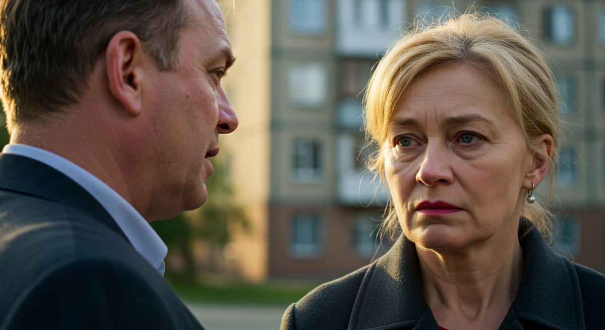 В этот момент из подъезда вышел Алексей. Он был в простой куртке, с авоськой в руках. Увидев Ольгу и стоящего рядом с ней напряженного мужчину, он на секунду замедлил шаг, но потом спокойно кивнул Ольге.