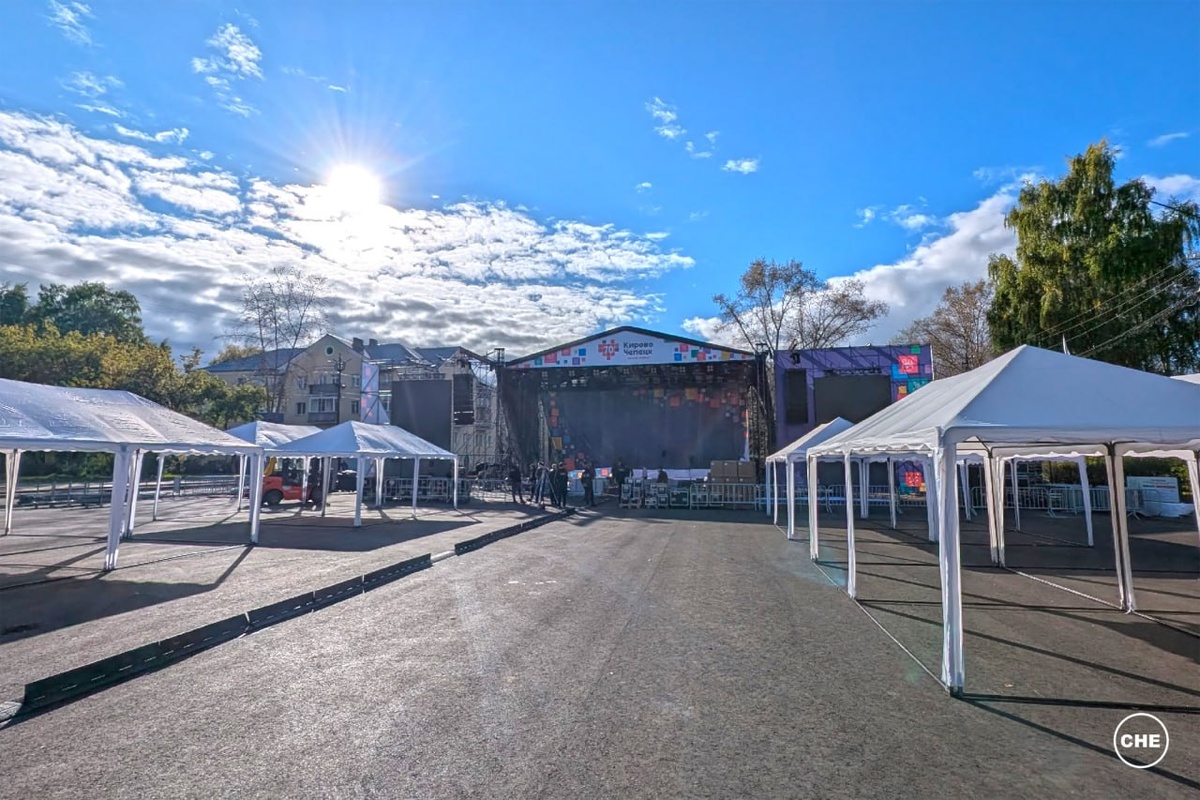 Город готовится отмечать юбилей. На площади у ДК «Дружба» разместили большую сцену.