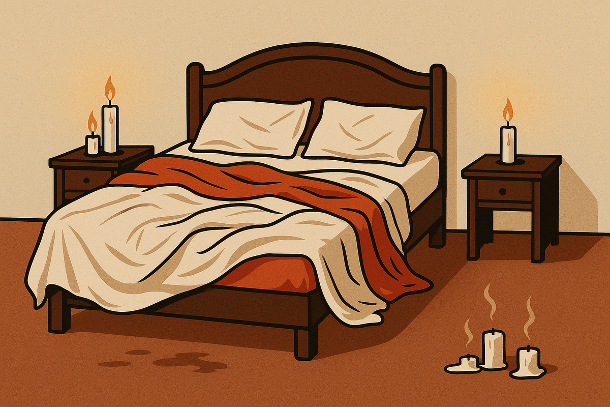 Зажигаешь свечу — только чтобы он различал твои движения в полумраке. Берешь щекоткалку. Просишь его закрыть глаза. Проводишь нежными перьями по его векам, губам, шее... ниже, еще ниже, заставляя кожу трепетать. Садишься перед ним на колени и начинаешь дразнить стопы: легкие, едва уловимые касания, от которых все тело напрягается в ожидании. Первый вздох возбуждения - сигнал. Берешь свечу, выливаешь воск масло на пальцы его ног. (У Mystim Petits приятная, но слегка жгучая температура плавления, поэтому контраст между нежностью и дерзостью будет очень заметен). Начни массировать стопы, плавно поднимаясь выше по его телу, сопровождая свои движения поцелуями. Когда почувствуешь, что партнер расслабился, резко встань и разверни его спиной, прикажи руками упереться в стену. Смотреть все еще запрещено. Ты выливаешь масло ему на спину, чередуя нежные прикосновения с поцелуями, продолжая и дальше вводить его в заблуждение. В свободной руке уже ожидает плеть. Легкий удар. Не больно, но неожи