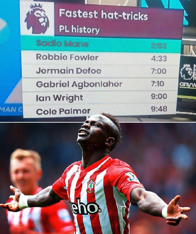 Садио Мане — автор самого быстрого хет-трика в истории Премьер-Лиги (2 минуты и 53 секунды) ⚽️⚽️⚽️