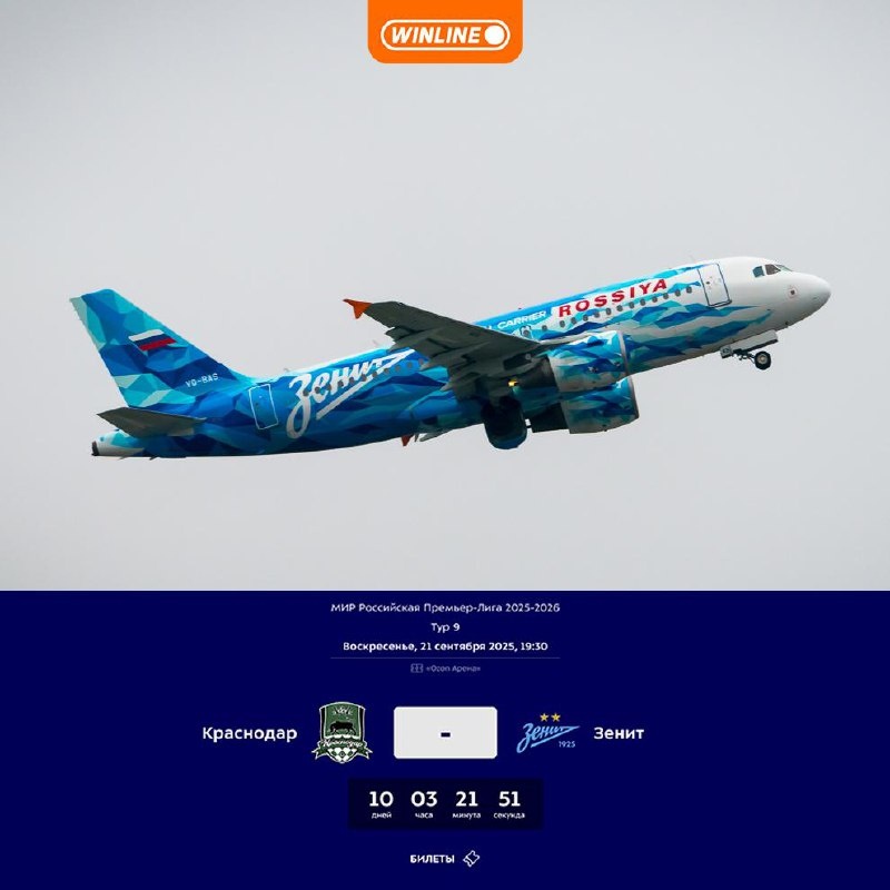 ⚡ Краснодарский аэропорт открыли впервые за 3 года в честь столетия Зенита! Теперь клуб из Петербурга отправится на гостевой матч к чемпиону страны 21 сентября напрямую по воздуху, а не на поезде.